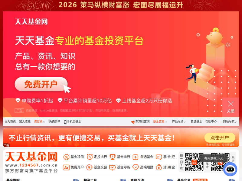 作为国内领先的基金销售平台之一,天天基金网(1234567.com.cn)自成立以来,凭借其背靠东方财富网强大的互联网金融生态,成为首批独立基金销售机构,受到广大投资者的欢迎与信赖。本文将从平台的优势与潜在弊端、宗旨理念、核心功能、收益最大化推广方案、以及平台实力等方面,全面剖析该平台的独特价值和市场竞争力。 优势方面: 潜在弊